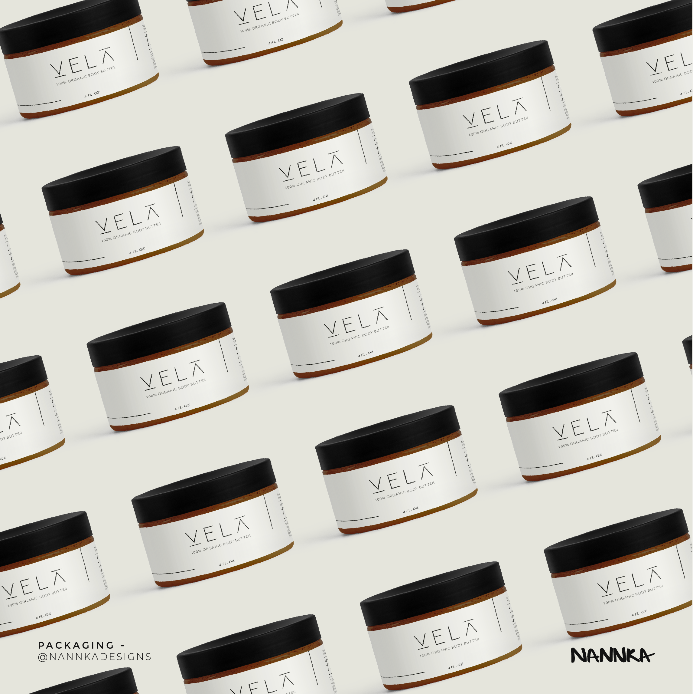 Branding & label design for VELA- an organic body butter in the USA. A minimalistic approach with a symbolic–feel where the letters represent trees and nature.